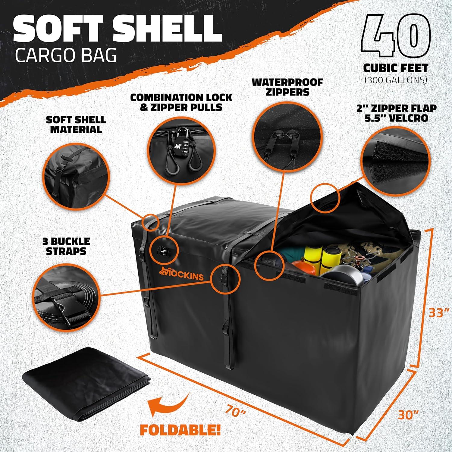 INCLUDES ROOFTOP CARGO BAG : The Mockins 16 Cu Ft. (45″x34″x18″) Waterproof Cargo Bag for top of car is made from durable, abrasion-resistant vinyl, providing all-weather performance. Our vehicle soft shell carriers feature a protective zipper flap with Velcro closures to keep cargo secure. Along with its spacious, foldable design, the car roof bag includes 4 side handles & easy-to-use zipper pulls. Cargo always stays protected with this cartop carrier waterproof bag, ideal for every journey.