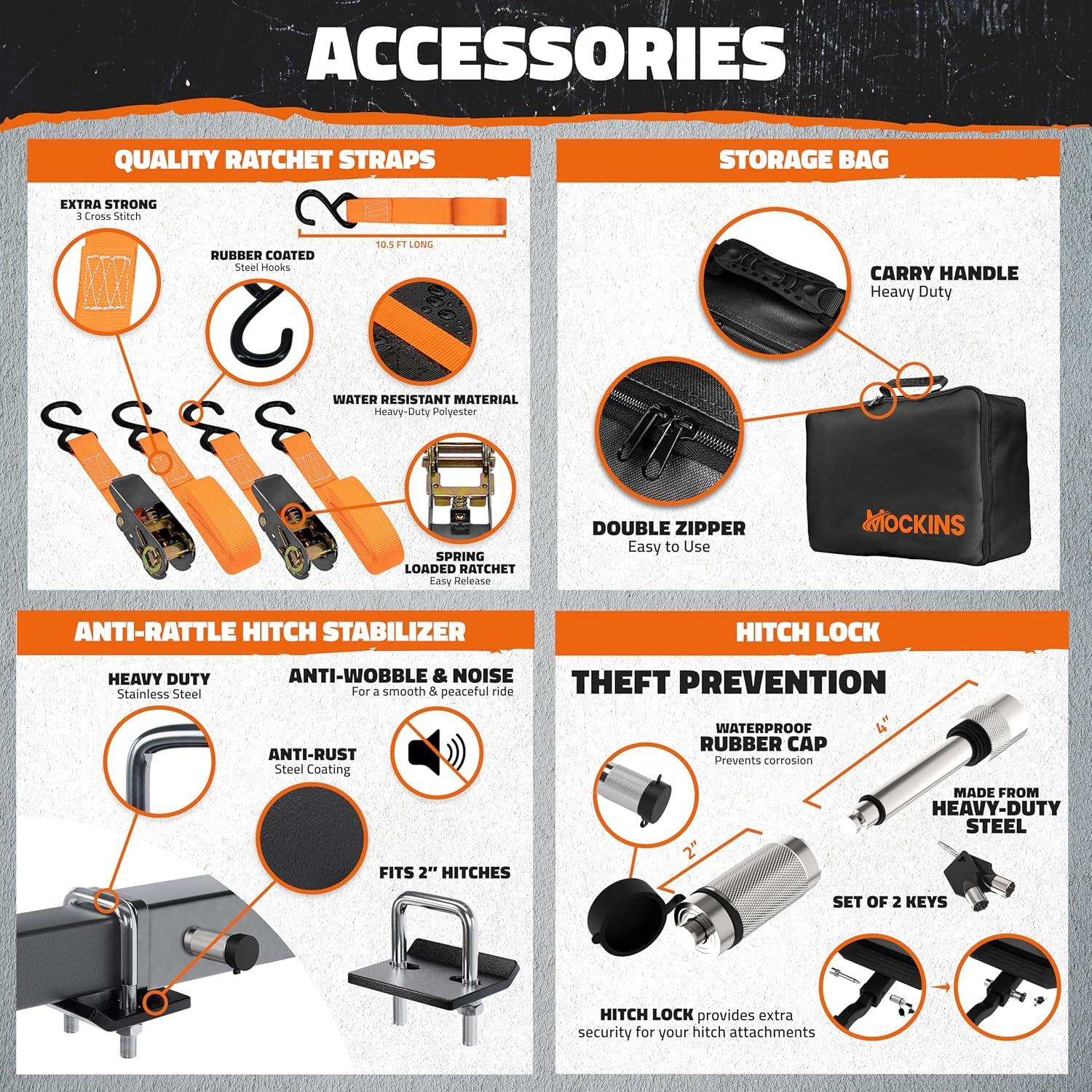 Mockins 16 Cubic Ft. Gray Cargo Carrier Bag & 60″x20″x6″ Folding Trailer Hitch Cargo Carrier w/Rear Lights Bundle