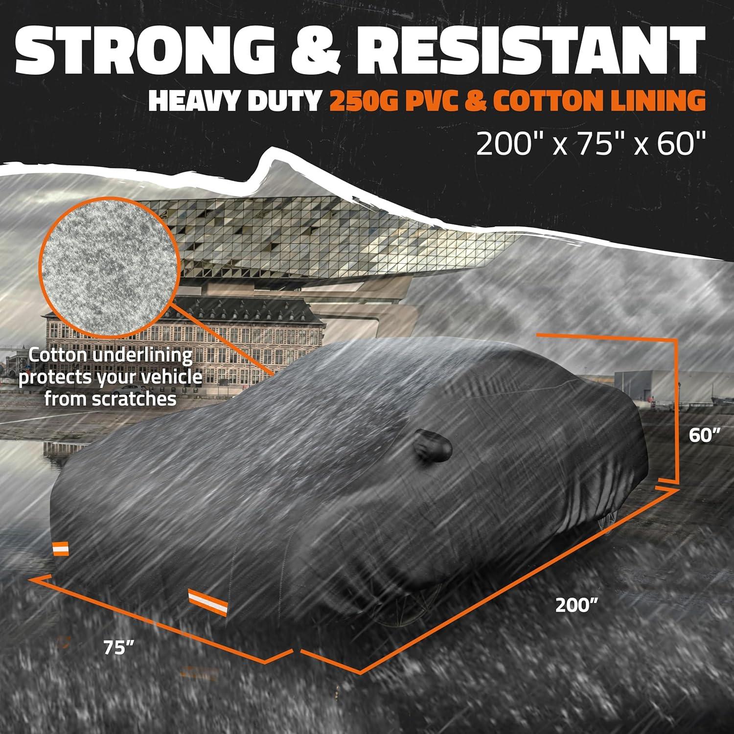 Mockins 91″x49″x39″ Large Motorcycle Cover Heavy Duty Dual-Layer 250G PVC + Soft HD Cotton | Motorcycle Cover Waterproof Outdoor Fit for Midsize Cruisers, Sport-Touring, Retro Models & More Up to 91″(SUV – Large – 200″ x 75″ x 57″)